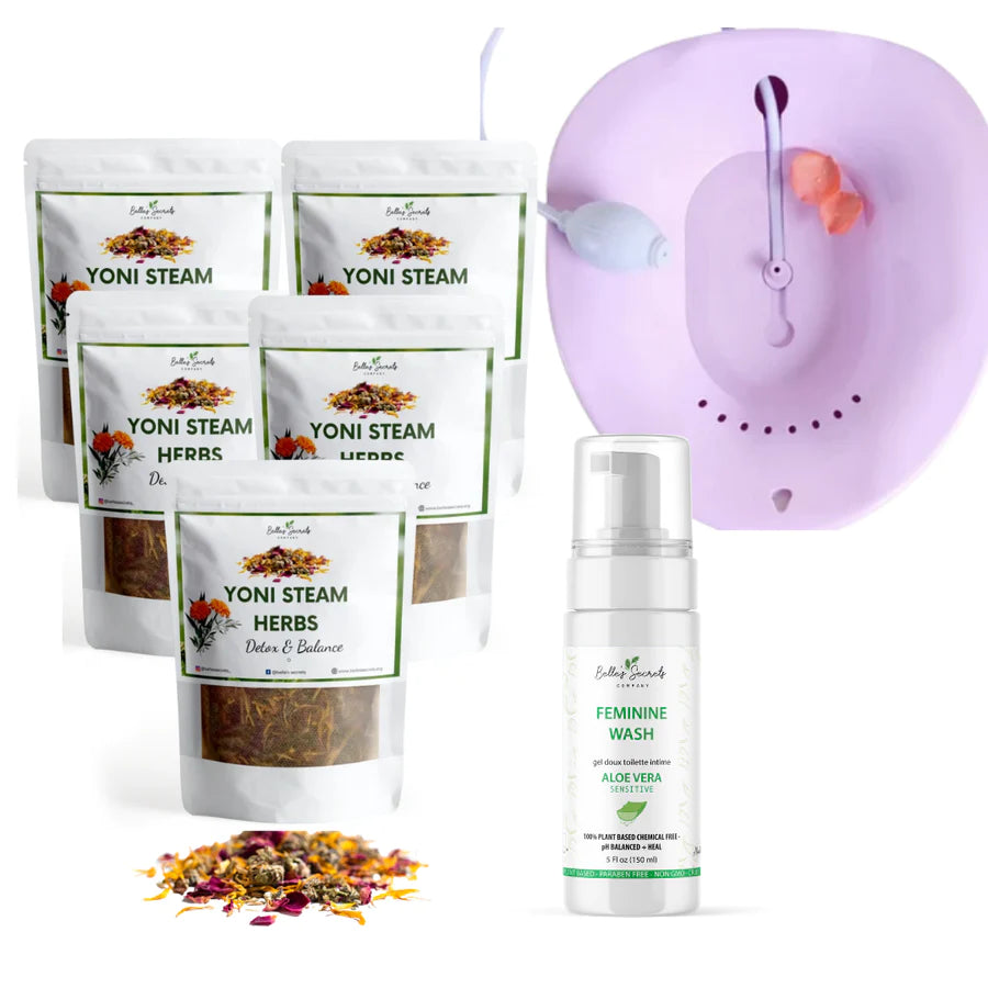 Restez frais et sans crampes pendant votre cycle et au-delà avec notre nouvelle box anti-douleurs. Méditez et apaisez votre esprit avec nos herbes vapeur Yoni, nettoyez et soignez vous avec féminin wash à l'aloe vera.